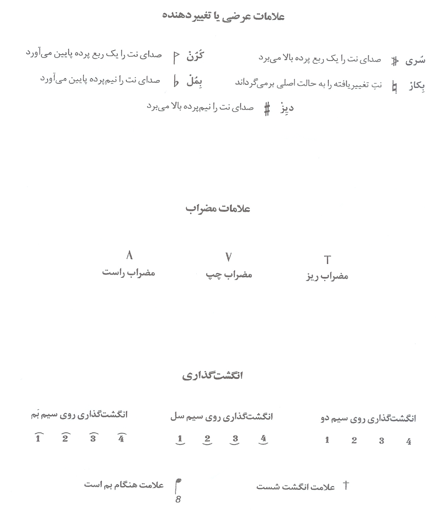 علامات تغییر دهنده، مضراب ها و انگشت گذاری